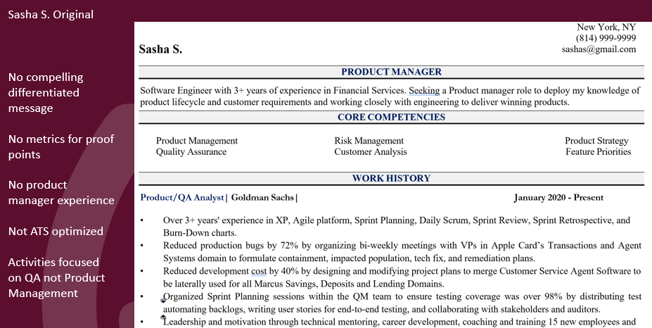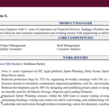 The team emphasized the importance of showcasing strategic thinking, product management skills, and an understanding of user experience—all essential qualities for a Product Manager. When looking at the older resume, it still looked like QA activities, even though she was applying for a Product Management position.